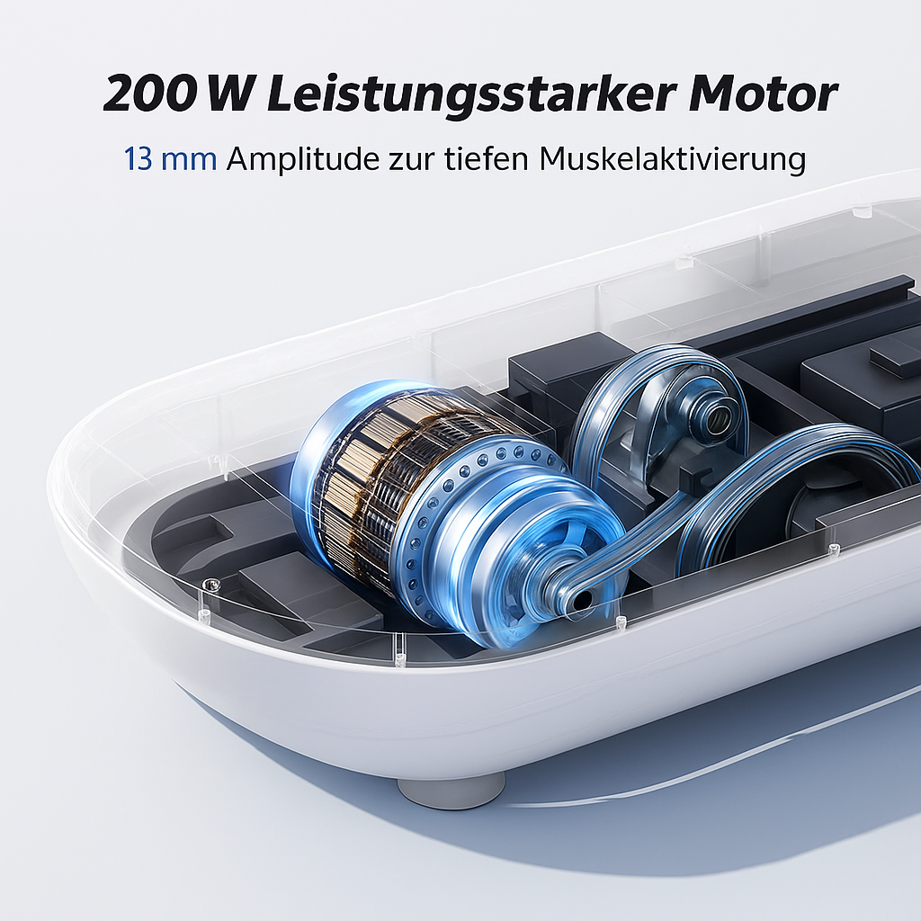 Die 200-W-Leistung und die 13-mm-Amplitude sorgen für eine schnellere Fettverbrennung von bis zu 300 Kalorien pro Sitzung, während die 200 kg Tragkraft und die extra große, stabile Fläche ein sicheres Training mit voller Power ermöglichen.